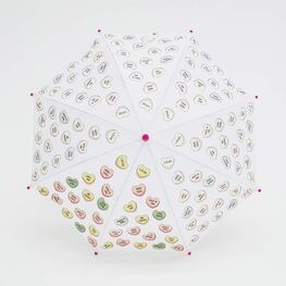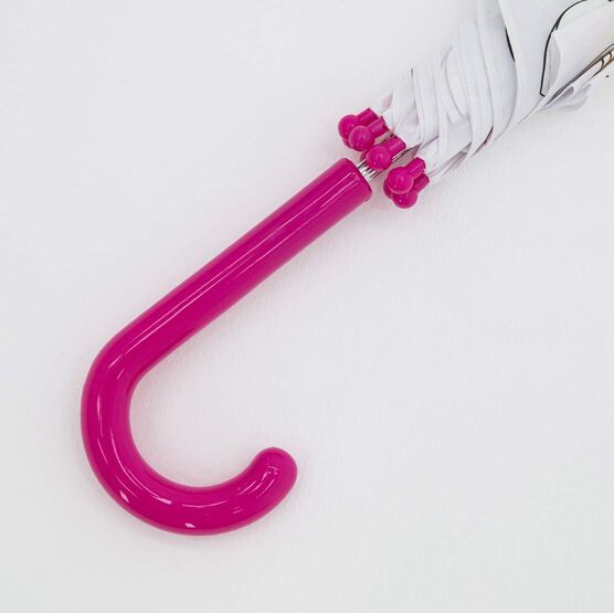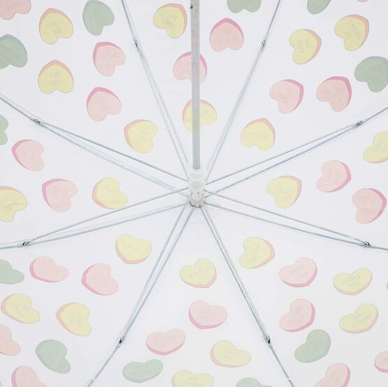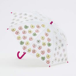 Детский зонт-трость для девочки с рисунком станет необходимым аксессуаром для Вашего ребенка. Интересный принт в виде сердечек с надписями будет радовать и защищать в дождливую погоду, а в солнечную укроет от прямых ультрафиолетовых лучей.