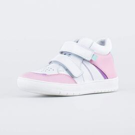 Модель выполнена полностью из натуральной кожи. Кожаная подкладка абсорбирует образующуюся внутри обуви влагу и гарантирует полный комфорт. Два ремня с застежкой «липучка» гарантируют быстрое и удобное одевание, и в то же время плотно фиксируют обувь на стопе. Мягкий манжет создает комфорт при ходьбе и предотвращает натирание ножки ребенка. Подошва с небольшим заходом на носочную часть увеличит долговечность ботинок. Декоративная отделка на ремнях и резные края деталей придают модели нарядности и нежности.