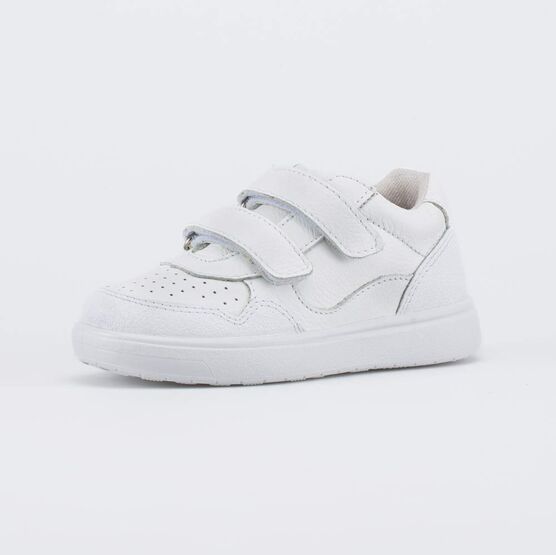 Детские кожаные полуботинки выполнены в белом цвете и подходят для ребенка дошкольного возраста.