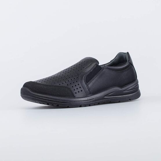 Кожаные черные туфли - слипоны для мальчика подходят для повседневной носки в школу.