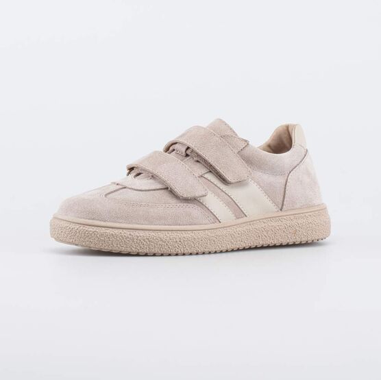 Бежевые велюровые кеды-полуботинки отлично дополнят образ девочки школьного возраста.