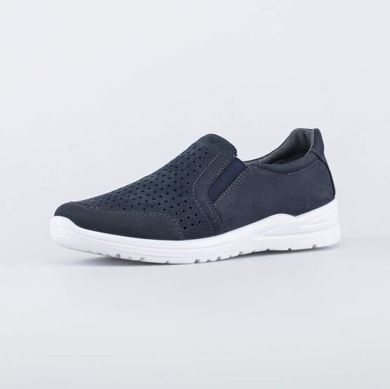 Кожаные слипоны синего цвета подойдут для мальчика-подростка.