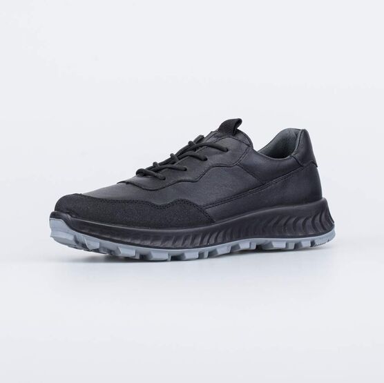 Кожаные полуботинки черного цвета, выполненные в кроссовочном стиле, подходят для мальчика-школьника.