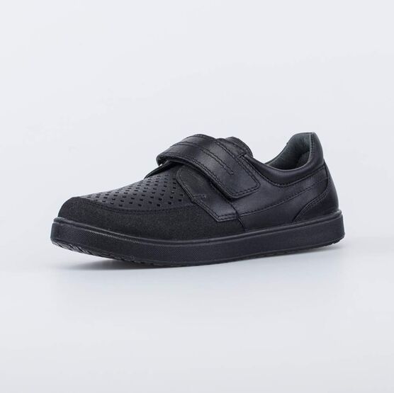 Черные туфли для мальчика прекрасно подходят в качестве сменной обуви в школе.