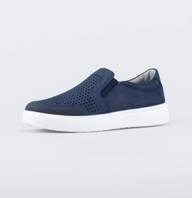 Синие полуботинки для мальчика-подростка, стилизованные под текстильные кеды, обладают хорошей воздухопроницаемостью и отлично подходят в качестве сменной обуви в школу.