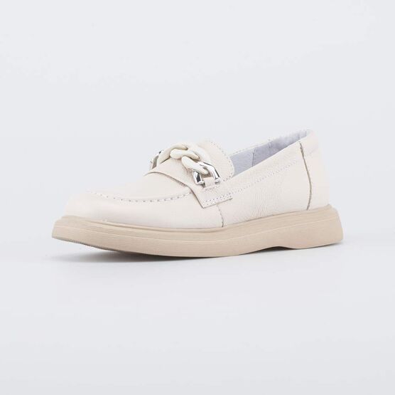 Светлые туфли-лоферы разработаны с учетом детской ноги и отличной подходят как повседневная обувь в школу.
