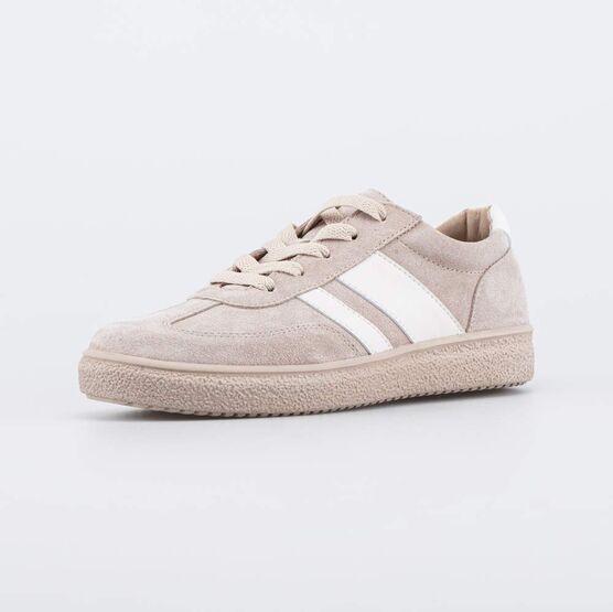 Бежевые велюровые кеды-полуботинки отлично дополнят образ девочки подросткового возраста.