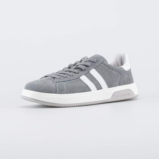 Верх изготовлен из дышащего натурального велюра серого цвета, который дополнен белыми акцентами.