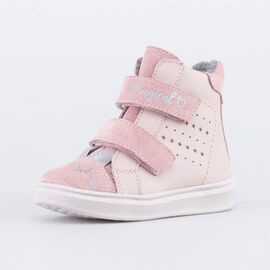 Обувь предназначена для детей младшего возраста, поэтому особое внимание уделено правильной конструкции: модель имеет пятку необходимой жесткости, приподнятость пяточной части (незаметно снаружи), круглый закрытый носок, безопасные застежки.