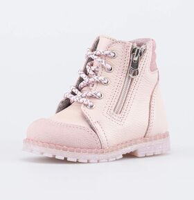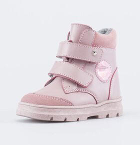 Кожаные ботинки с байковым утеплителем нежного цвета подойдут малышам, которые только начинают ходить.