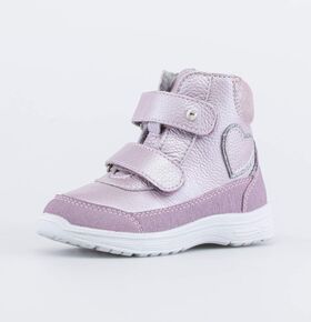 Верх выполнен из натуральной гладкой кожи светло-сиреневого цвета. Подкладка из байки (больше 80% натуральная овечья шерсть) и войлочная стелька хорошо сохраняют тепло.