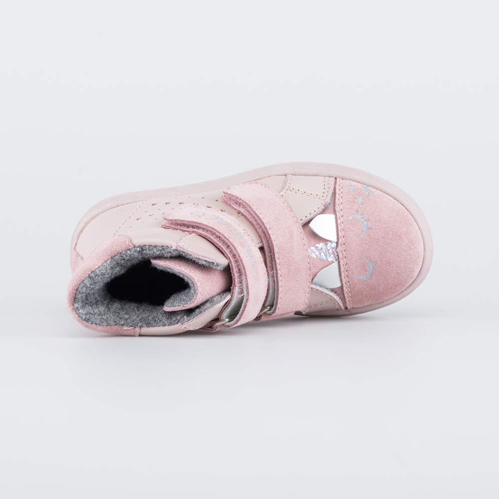 Элементы декора: серебристый принт с ушками в виде единорога, перфорированная звездами кожа на внешней стороне ботинка, стильная надпись на липучке Magical.