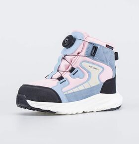 Детские ботинки с системой быстрой шнуровки надежно фиксируются на ногах одним движением: просто покрутите шайбу, и тросики затянутся.