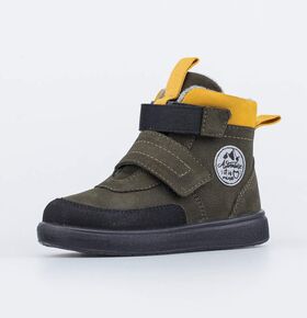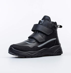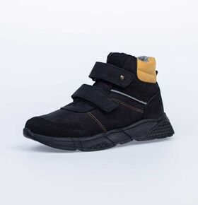 Стильные ботинки с подкладкой из байки с 80% содержанием шерсти. Верх выполнен из комбинации материалов гидрофобного нубука и гладкой кожи, которые придают изделию эффектный внешний вид. Два ремня с липучкой позволяют не только быстро обувать и снимать обувь, но и обеспечивают плотное прилегание обуви к стопе.Носочная часть защищена кожаным носком с покрытием, что придаёт носочной части повышенную износостойкость. Мягкий манжет создает комфорт при ходьбе и предотвращает натирание ножки ребенка. Подошва литьевого метода крепления легкая и гибкая, имеет анатомическую форму следа, повторяя изгибы свода стопы.