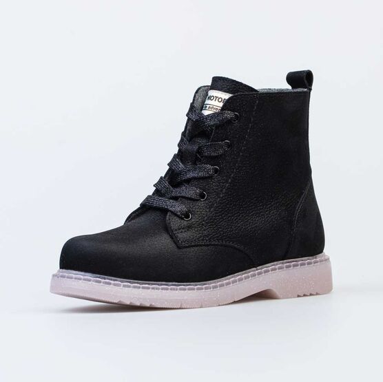 Демисезонные ботинки из натуральной кожи с эффектом мерцания, предназначены для девочки школьного возраста.