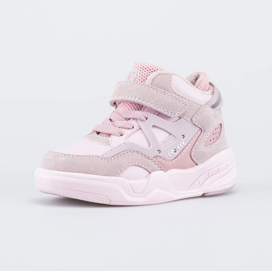 Верх изготовлен в сочетании натурального велюра, высококачественной искусственной кожи и текстильного сетчатого материала, из которого выполнены язычок и манжет ботинок.