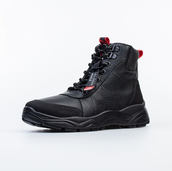Верх выполнен из гладкой натуральной кожи черного цвета. Классический язычок и манжет из текстиля обеспечивают отведение влаги во время активного движения.