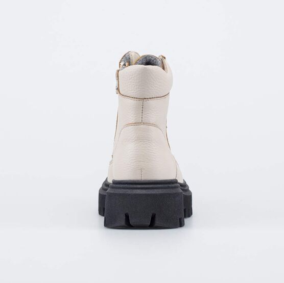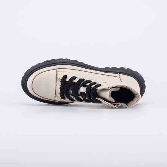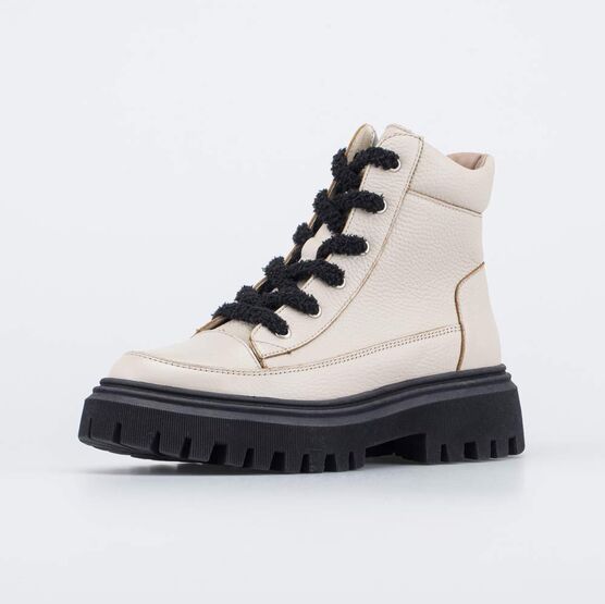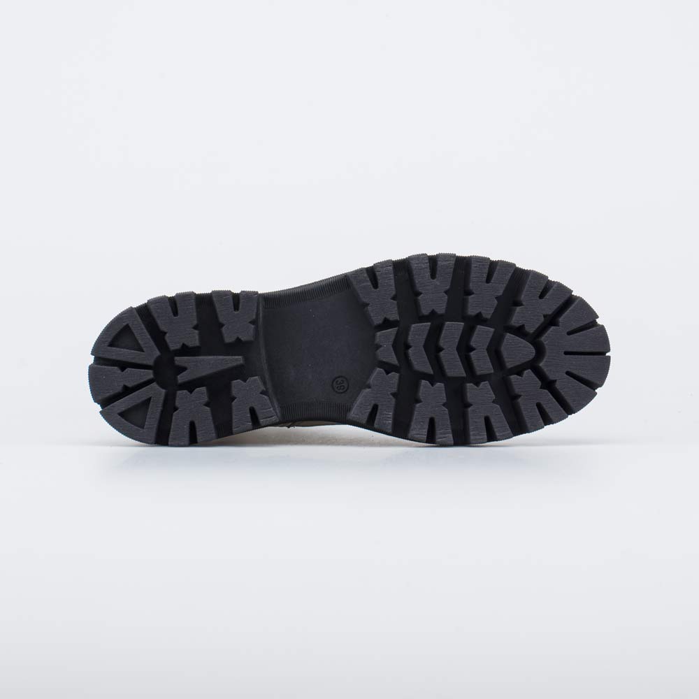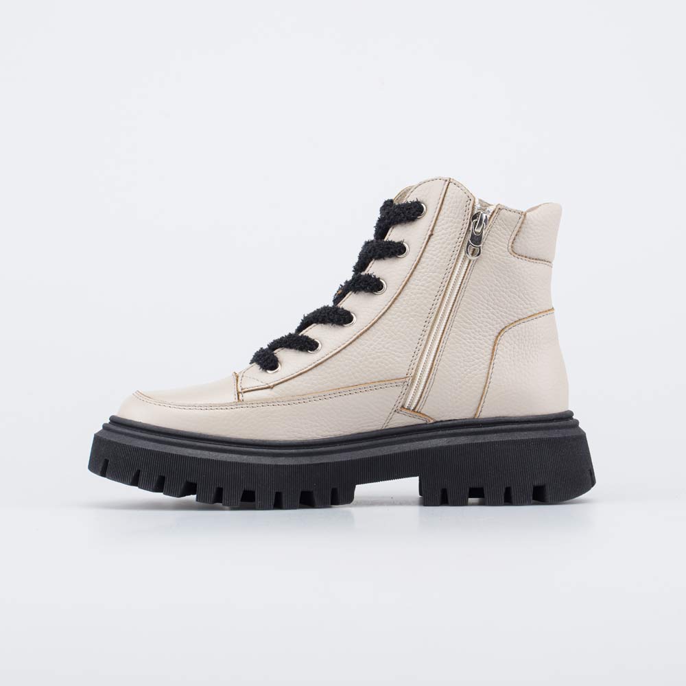 Утепленные кожаные ботинки черно-бежевого цвета подходят для девочки-подростка.