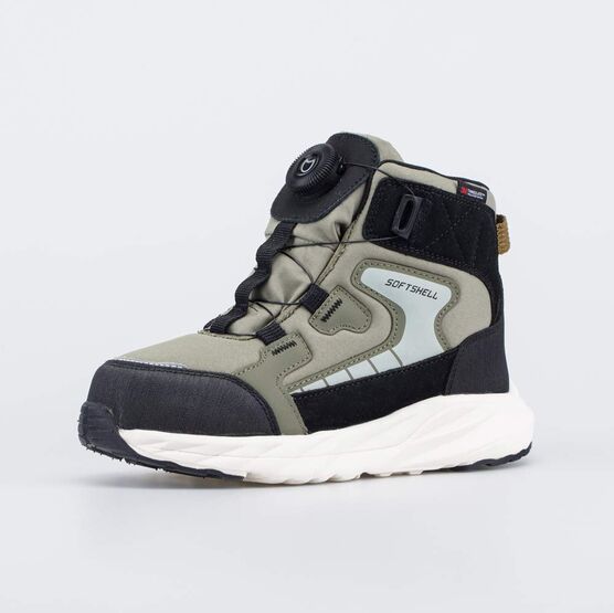 Верхний слой из материала Softshell обеспечивает защиту от непогоды: не продувается, отталкивает влагу и быстро сохнет. Ответственные детали выполнены из натуральной кожи. Носочная и пяточная части защищены антивандальными накладками.