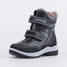 Сапожки изготовлены из комбинации натуральной кожи и текстильного материала верха позволят ножкам оставаться сухими в ненастную погоду. Верхний слой выполнен из текстиля на основе нейлона, защищает от ветра, грязи и брызг. Подкладка обуви с содержанием натуральной шерсти прекрасно удерживает тепло, обладает гигроскопичностью и водонепроницаемостью. Для безопасности прогулок в темное время суток сапожок оснащен световозвращающими элементами. Подошва модели – литьевая, выполнена из полиуретана (ПУ) – пластичного материала, отлично амортизирующего при шаге и не теряющего своих свойств при понижении температур.Литьевой метод крепления подошвы обеспечивает ей максимальную прочность, необходимую гибкость и минимальный вес. Подошва имеет анатомическую форму следа и в точности повторяет изгибы свода стопы, что позволяет ноге чувствовать себя комфортно весь день. Удобная застежка велькро ( липучка) увеличивает раскрываемость модели, что делает ее почти универсальной для ножек любой полноты.