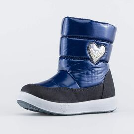 Сапожки-дутики для девочки изготовлены из комбинации натуральной кожи и текстильного материала.