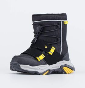 Верхний слой этих черных сапожек выполнен из непродуваемого и водоотталкивающего текстиля. Нижняя часть до 1/3 высоты продублирована натуральной кожей-нубуком.