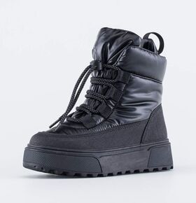 Зимние сапожки-дутики на молнии легко надевать, а шнурок с фиксатором препятствует попаданию снега внутрь обуви.