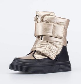 Зимние сапожки имеют верх из непродуваемого и водоотталкивающего текстиля. По всему периметру вдоль подошвы он защищен от грязи и реагентов накладкой из натуральной кожи-велюра.