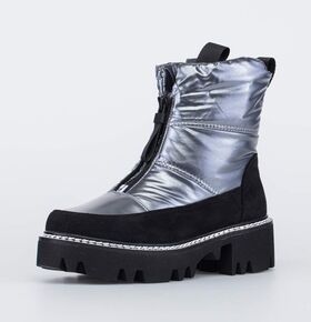 Зимние ботинки-дутики черно-серого цвета подходят для девочки-подростка.