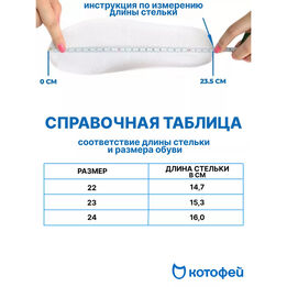 Кеды внешне выглядят как обувь с плоской подошвой, т.е. как будто бы они не подходят для детской ножки. Но это неверно в отношении обуви ТМ Котофей! Внутри наши кеды имеют формованную стельку, которая обеспечивает поддержку стопы. И, конечно, мы обязательно делаем жесткую пятку, чтобы помочь детской ножке развиваться правильно.
