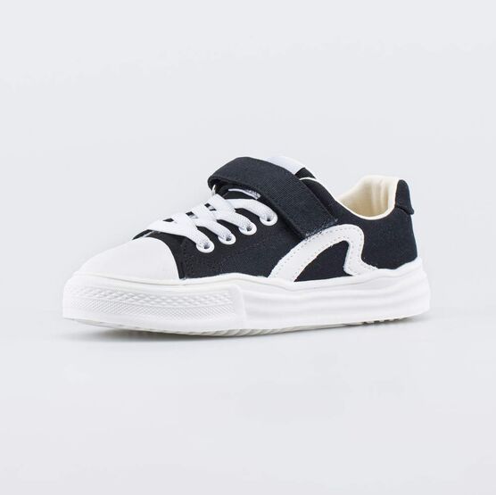 Удобные кеды, выполненные в контрастных черно-белых цветах, отлично дополнят образ мальчика или девочки дошкольного возраста.