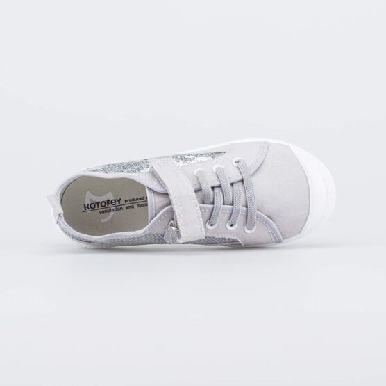 Детские хлопковые кеды, украшенные пайетками, подойдут для девочки школьного возраста.