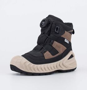 Верх этих детских ботинок изготовлен из ветронепродуваемого текстиля. До 1/3 высоты модель защищена от реагентов натуральной кожей с ПУ-покрытием.