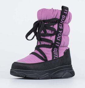 Спортивная подошва с высоким протектором учитывает особенности детской ножки и имеет хорошую устойчивость на зимних покрытиях.