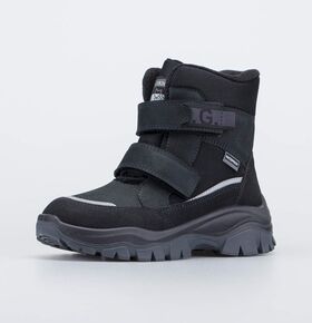 Спортивная подошва с высоким протектором учитывает особенности детской ножки и имеет хорошую устойчивость на зимних покрытиях.