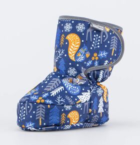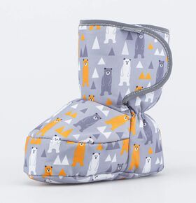 Зимние пинетки с липучкой-велькро удобно надевать на малыша за счет максимальной раскрываемости. Дополнительно в районе пятки пинетки фиксируются мягкой резинкой.