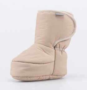 Пинетки на меху выполнены из мягкой влагоотталкивающей и непродуваемой болоньевой ткани. Шерстяной мех из натуральной овечьей шерсти в качестве подкладки обеспечивает оптимальный микроклимат вокруг ножки и сохраняет тепло во время прогулок в коляске при минусовых температурах. Материалы допускают эксплуатацию от плюс 10 до минус 25 градусов, но будьте осторожны, поскольку не всем малышам допустимо гулять при сильных морозах.