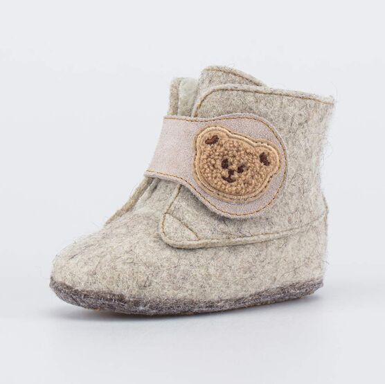 Пинетки выполнены из натурального войлока. Шерстяной мех из натуральной овечьей шерсти в качестве подкладки сохраняет уютное тепло вокруг ножек. Рекомендуется надевать на хлопковые носочки, но также допустимо надевать на босу ножку.