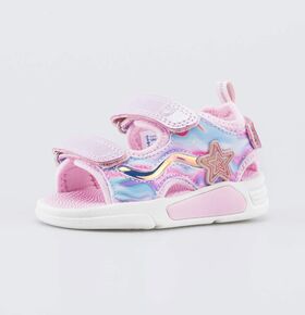 Детские пляжные сандалии со светящейся подошвой отлично дополнят летний образ девочки. Модель максимально открытая – подходит для жаркой погоды и быстро высыхает при намокании. LED рассчитаны на полмиллиона срабатываний и горят даже под водой.
