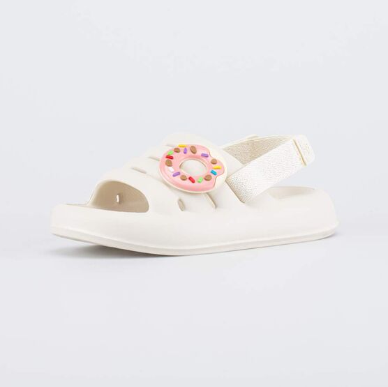 Текстильный ремешок с липучкой надежно фиксирует сандалии на ноге.
