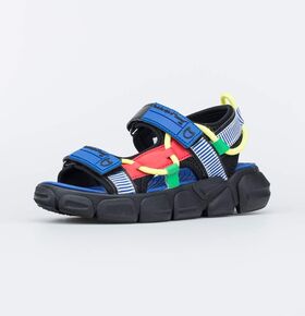Летние сандалии, выполненные в черном цвете с яркими акцентами, отлично дополнят пляжный образ мальчика подросткового возраста.