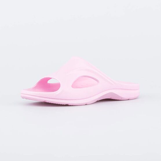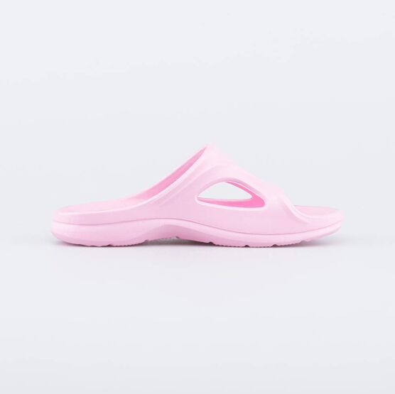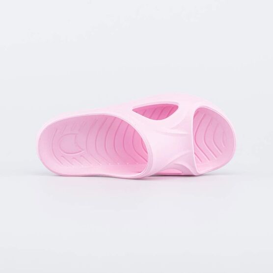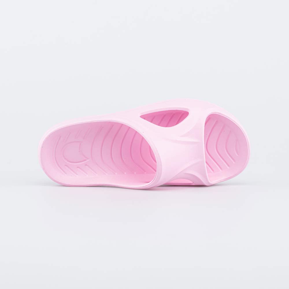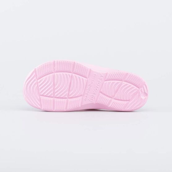 Лёгкие шлепанцы розового цвета отлично дополнят пляжный образ девочки-подростка.