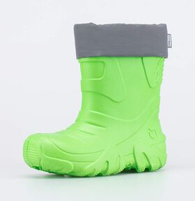 Детские резиновые сапожки оливкового цвета подойдут для мальчика, который только начинает ходить.