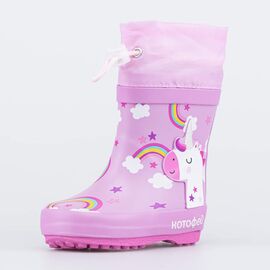 Отворот из плотного нейлона с веселым рисунком, в сочетании с сапожками, имеет привлекательный дизайн.