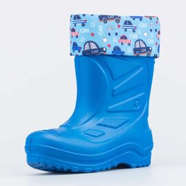 Синие резиновые сапоги подходят для мальчика дошкольного возраста.