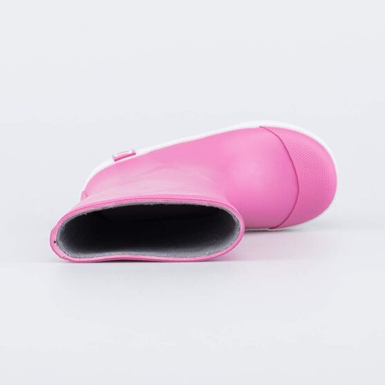 Резиновые сапоги цвета фуксии подходят для девочки дошкольного возраста.