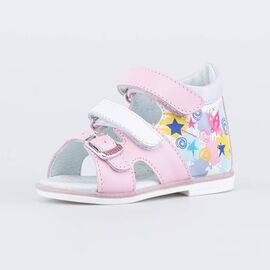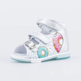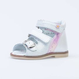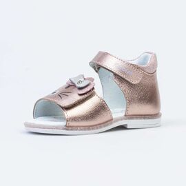 Нарядные сандалии из натуральной кожи, декорированные бантом и подошвой с блестками. Модель можно отрегулировать по полноте, благодаря чему сандалии подойдут практически для любой ножки. Высокий жесткий задник для правильного формирования стопы. Мягкий манжет создает комфорт при ходьбе и предотвращает натирание ножки ребенка.