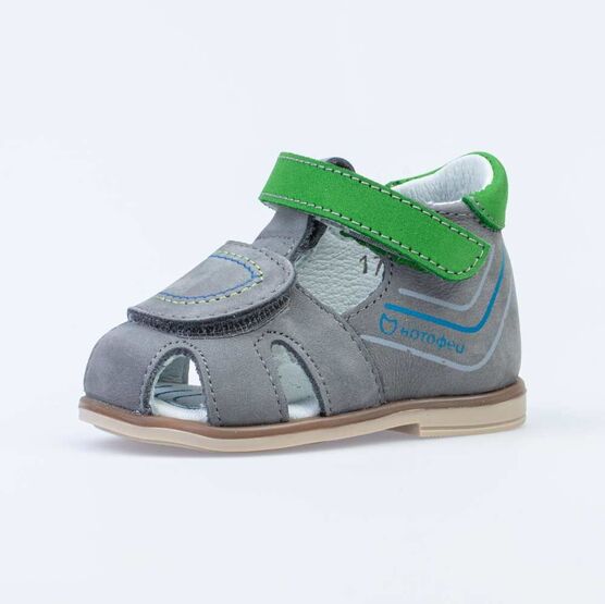 Туфли летние из коллекции «Первые шаги» выполнены полностью из натуральной кожи. Конструкция этой модели позволяет правильно развиваться ножке малыша, благодаря пяточной части с высокими берцами, жестким задником и невысокому каблучку. Закрытая носочная часть не позволит повредить пальчики малыша при ходьбе. Ремень в носочной части позволяет регулировать высоту подъема модели точно по стопе. Мягкий манжет создает комфорт при ходьбе ребенка.