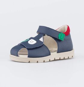 Туфли летние выполнены полностью из натуральной кожи модного синего цвета. Два ремня с велькро(липучкой) обеспечивают идеальную посадку по ноге. Мягкий манжет создает комфорт при ходьбе и предотвращает натирание ножки ребенка. Подошва выполнена из термоэластопласта – легкого, прочного материала, обладающего отличным амортизирующим свойством. Подошва имеет наплыв в носочной части, что увеличит долговечность сандалий и надолго сохранит приятный внешний вид.