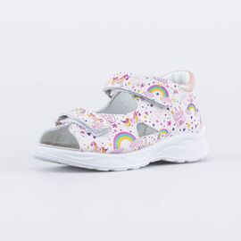 Сандалии предназначены для детей младшего возраста, поэтому особое внимание уделено правильной конструкции. Модель имеет пятку необходимой жесткости, мягкий подсводник, круглый закрытый носок, безопасные застежки.